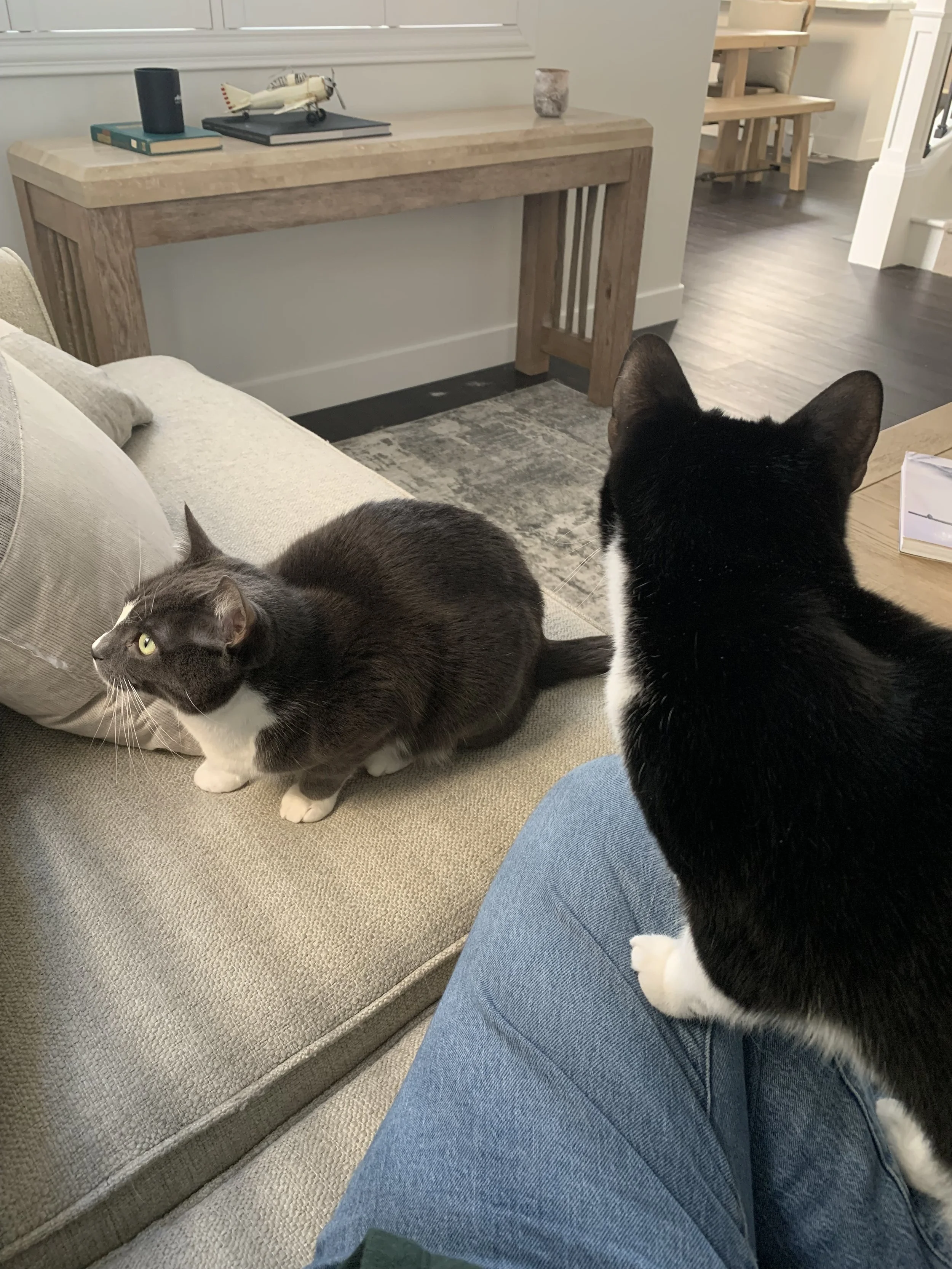 When I'm away, I have complete peace of mind because I trust Sarah will take amazing care of them. When I get photos from her, my cats look incredibly happy and relaxed, they're always near her or napping on her. She truly spends quality time with them, and I can tell she enjoys hanging out with my kitties. Her attention to detail is miraculous. If something in the house is a little off, a supply is running low, a plant is dying, she notices! I cannot say enough good things about her.”