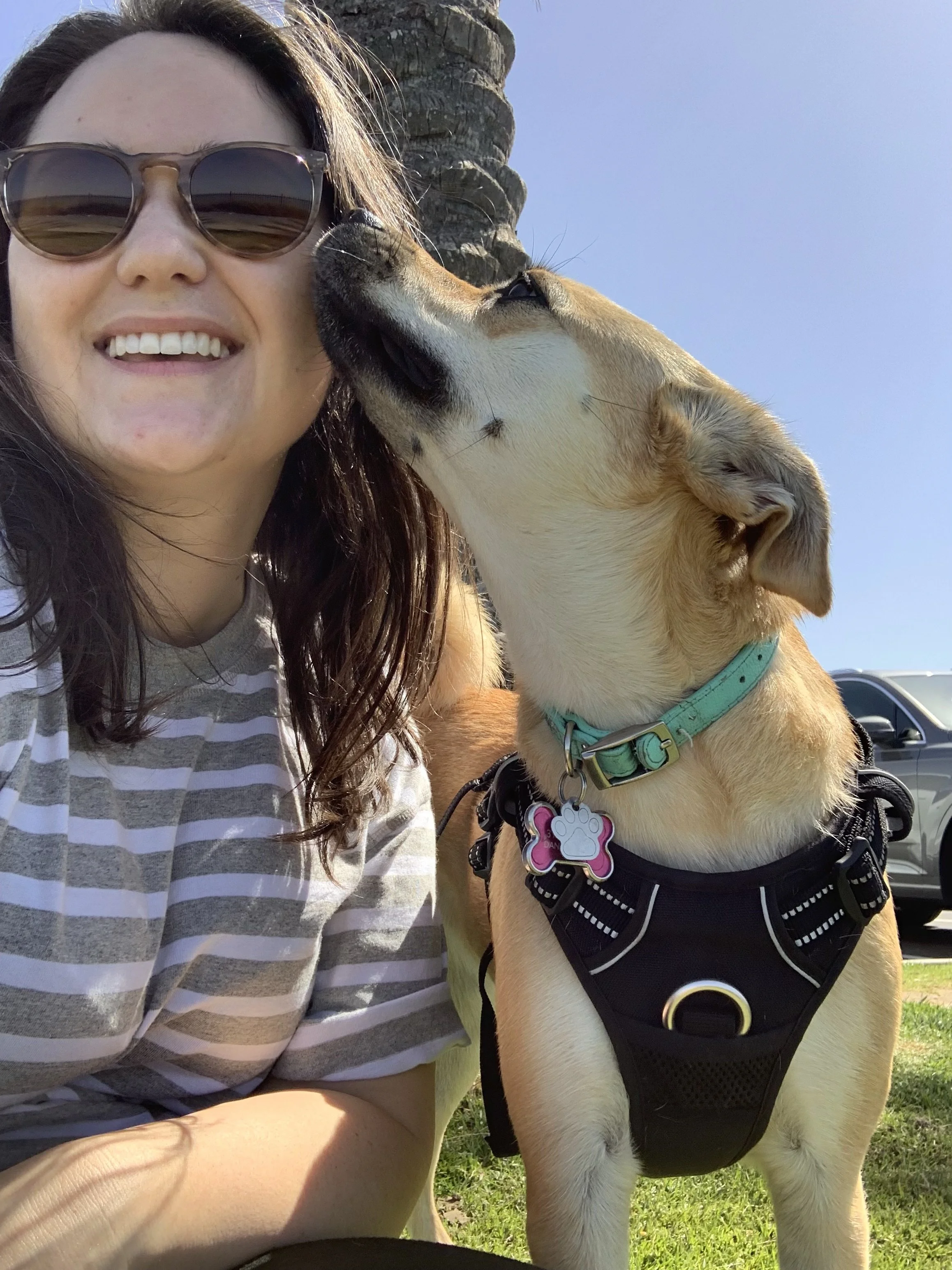“Sarah has cared for Sunny over the past year. She is detail-oriented, punctual, responsible, and thoughtful. She always checks my dog’s water bowl before leaving, for example. She walks Sunny for 30 minutes, bringing treats along so he can work on commands. He’s ALWAYS excited to see her because she = treats, love, and exercise! She is communicative and I always felt Sunny was safe in her hands. We are so grateful to have found her. We will be moving states soon and will be quite sad about losing Sarah, an invaluable dog caretaker connection.”